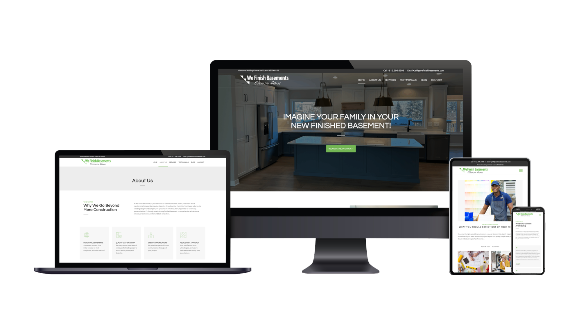 The original website for WeFinishBasements.com was outdated, lacked visual appeal, and didn’t clearly communicate the company’s services or value to potential customers.